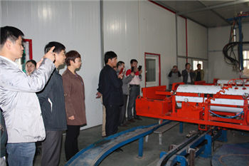 隨后在光源公司董事長李成彬等人引領(lǐng)下,先后參觀考察了水箱車間與產(chǎn)品組裝車間;期間對臥式環(huán)戊烷發(fā)泡水箱生產(chǎn)線、全自動產(chǎn)品組裝車間等國內(nèi)一流生產(chǎn)線生產(chǎn)設(shè)備,產(chǎn)生濃厚的興趣,并對其進行詳細了解以及對生產(chǎn)流程觀看。臥式環(huán)戊烷發(fā)泡水箱生產(chǎn)線采用地下恒溫室,置放七天以上,讓發(fā)泡保溫層充分發(fā)泡,防止二次發(fā)泡,保證后期質(zhì)量以及品質(zhì)。 最后參觀光源公司各型號太陽能熱水器以及公司專利產(chǎn)品‘太陽能純凈開水設(shè)備’;該設(shè)備廣泛適用于大規(guī)模飲水(如部隊、機關(guān)院校、幼兒園、企事業(yè)單位、醫(yī)院、賓館、酒店、車站、碼頭等)。將為群眾提供純水開水、溫水飲用??疾靾F對光源公司“太陽能純凈開水設(shè)備”給予高度好評。