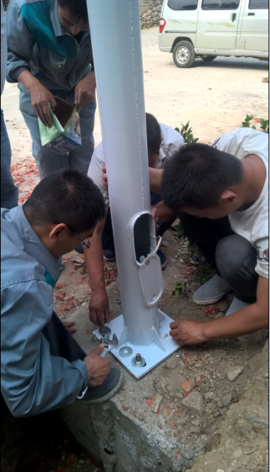 我們的同事們頂著著午間大太陽,積極為村民安裝太陽能路燈。