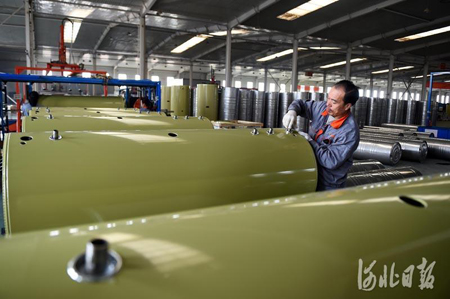 11月10日,河北光源太陽能科技有限公司工人在加工蓄熱式智能電鍋爐。